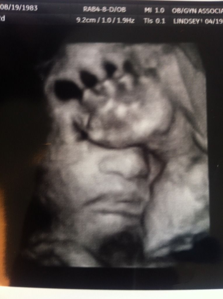 It appears he wasn't thrilled with us during the ultrasound. We must have been disrupting his nap. He wakes up like his daddy