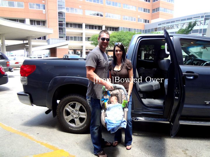 On Saturday, July 7, we spent our first night together as a family of 3. Of course, it was in a family room at the NICU, but we were all together, and that's all that mattered. Clay got us supper and we lounged on the bed, watching TV and enjoying cuddle time with Bryson. We fell asleep early but Bryson decided he liked hanging out too much to sleep. He and I spent 4 hours just hanging out. He wasn't fussy... ya know, until I laid him down and tried to sleep. He just wanted to be held and honestly, after the 9 days he'd had, I was glad to oblige.