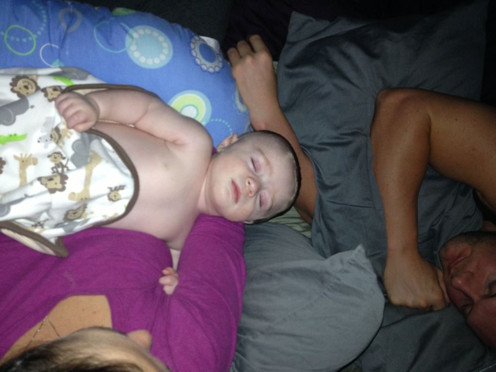 Our little wiggleworm, who usually loves lounging on the baby recliner (a.k.a. Boppy), wasn't content anywhere but Mommy's arms. I held him close and rubbed his head. Within 5 minutes, he was OUT! For 45 minutes, I rubbed his head, face and chest, and sang to him. When I checked his temperature again he was a cool 99.0, so I put him in his rock 'n' play and tried to get some rest in the event we had to go to Children's. Four hours later, another temp check revealed an even cooler 97.4, which is much closer to his usual since he got his Mommy's low core body temp.
